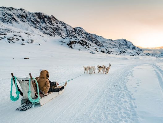Unsere Niederlassung World of Greenland betreibt mit großem Erfolg im Sommer Ferienhäuser am „kalbenden“ Eqi-Gletscher und in der hübschen Siedlung Ilimanaq. Nun bietet sie auch im Winter Unterkünfte in Iglu-Form an. Sie landen in der wundervollen Winterlandschaft, wo das Nordlicht hoffentlich am Abendhimmel tanzt. Inmitten der Berge übernachten Sie in einem Iglu – haben aber auch die Möglichkeit, in eine geheizte Hütte zu gehen.